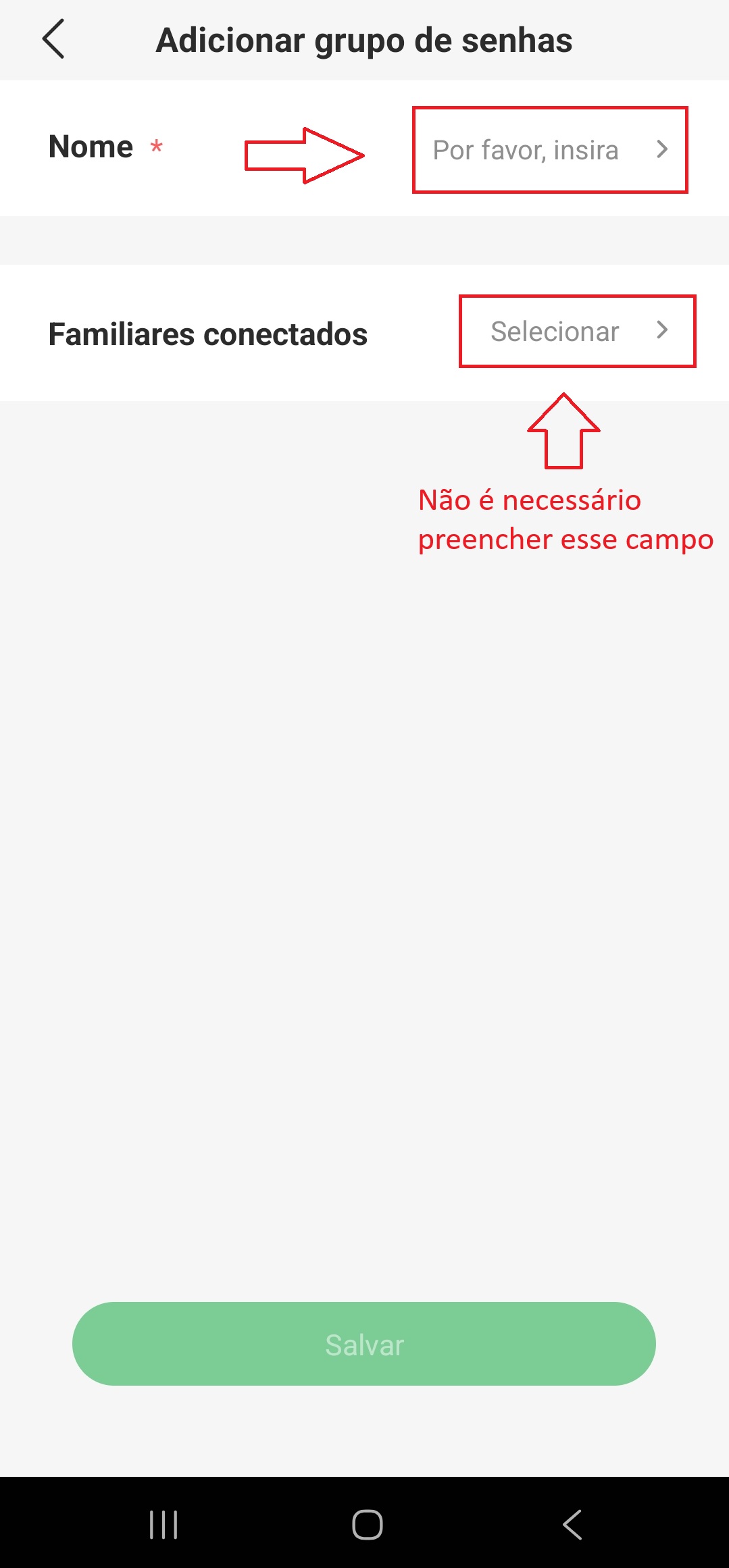 Permite cadastrar tags para acionamento da fechadura. Deve ser criado um grupo, apenas colocando um nome para ele, antes de fazer o cadastro.