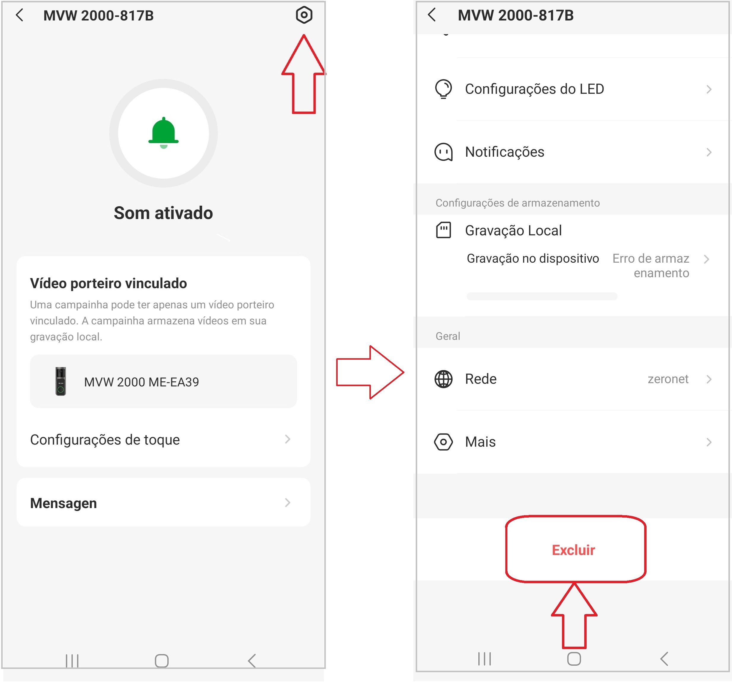 Esta função permite remover o dispositivo associado ao aplicativo. Ao excluir, o produto deixa de aparecer na lista de dispositivos e não poderá mais ser acessado até que seja configurado novamente.