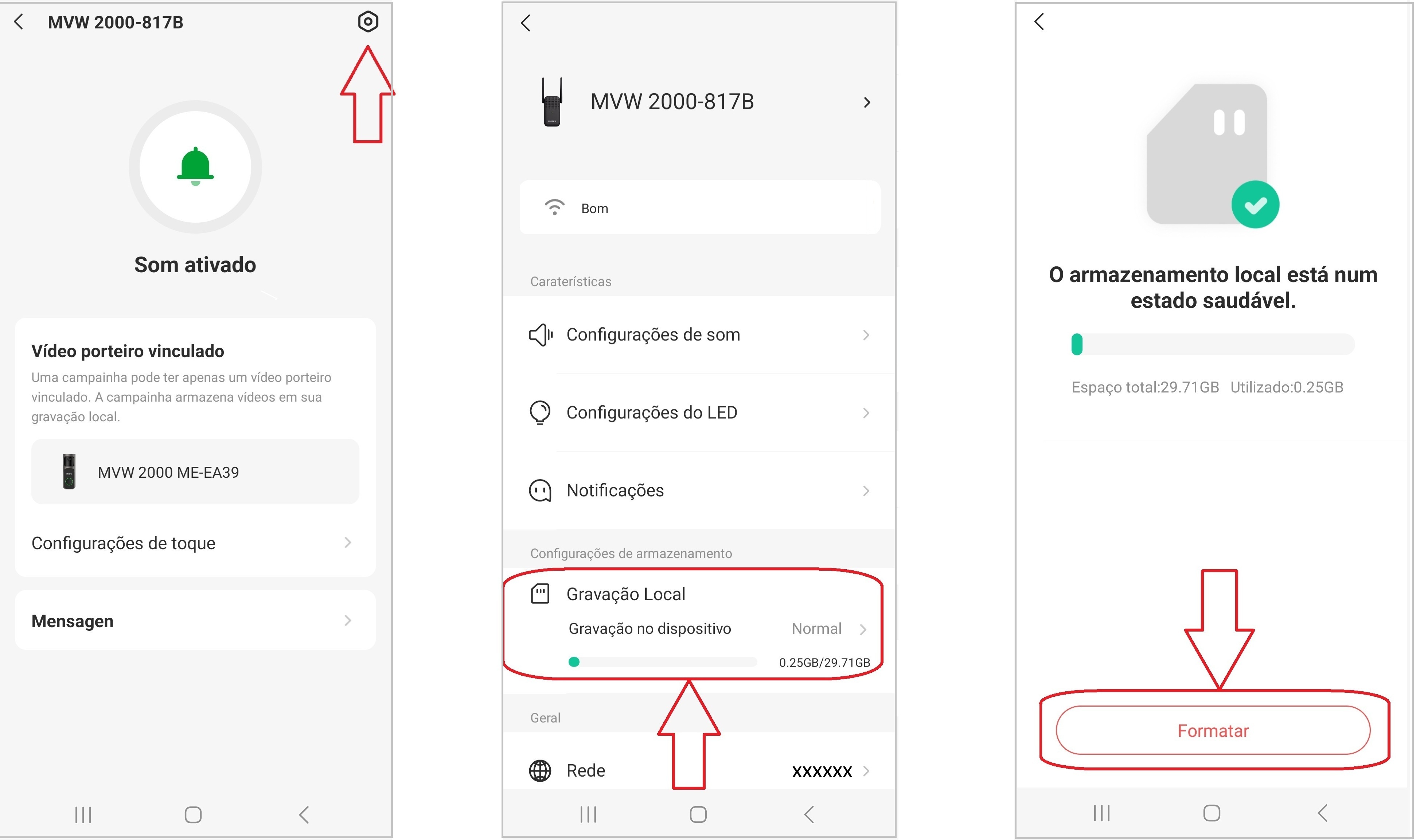 Atenção: A formatação apaga todas as gravações existentes. Realize este procedimento apenas se desejar limpar o armazenamento ou corrigir falhas.