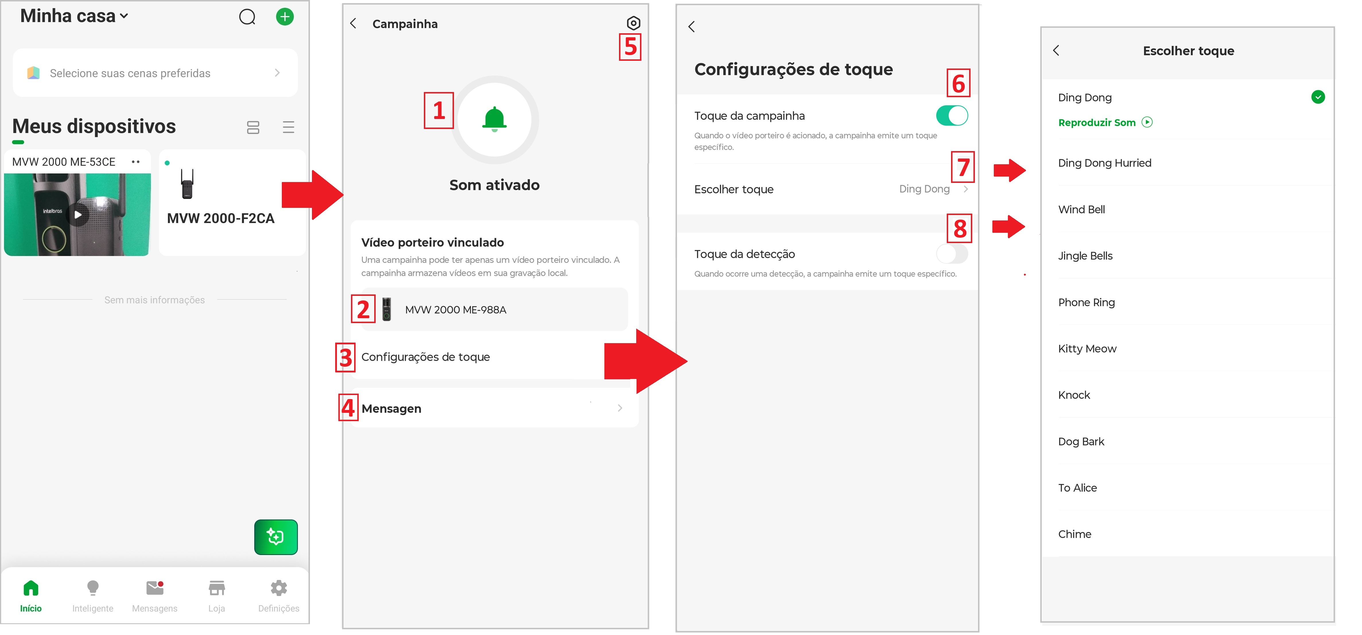 3 – Direciona para as configurações relacionadas ao toque da campainha.