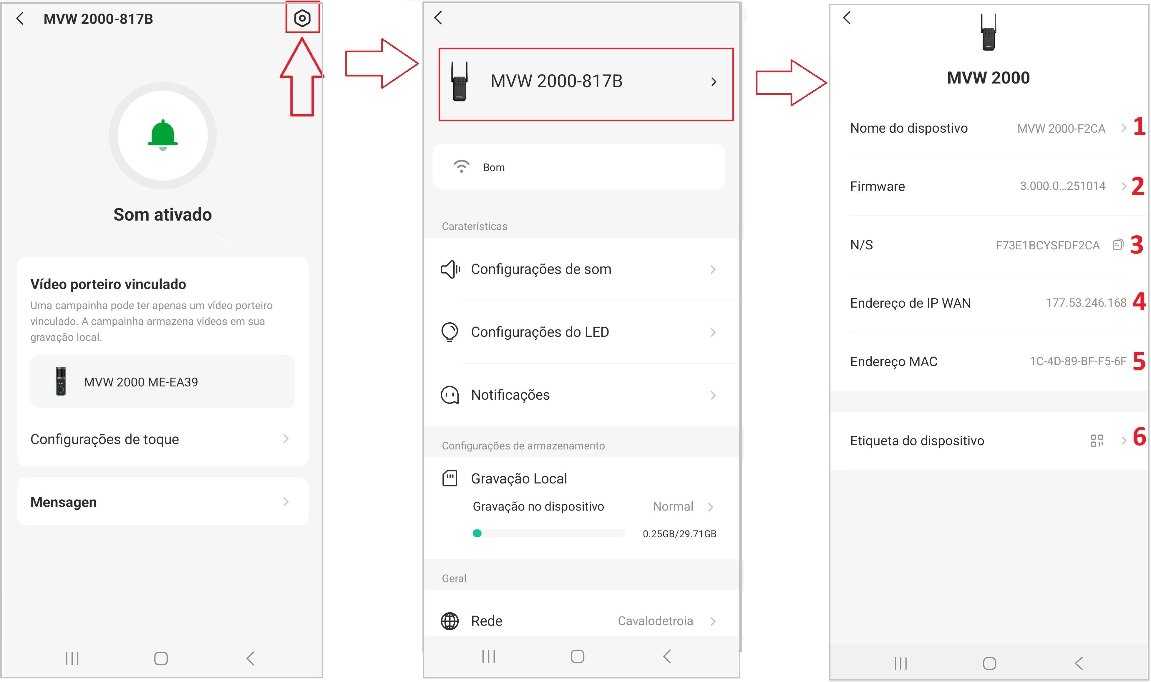 5 – Mostra o endereço MAC (Media Access Control) da campainha, um identificador único da interface de rede do dispositivo.