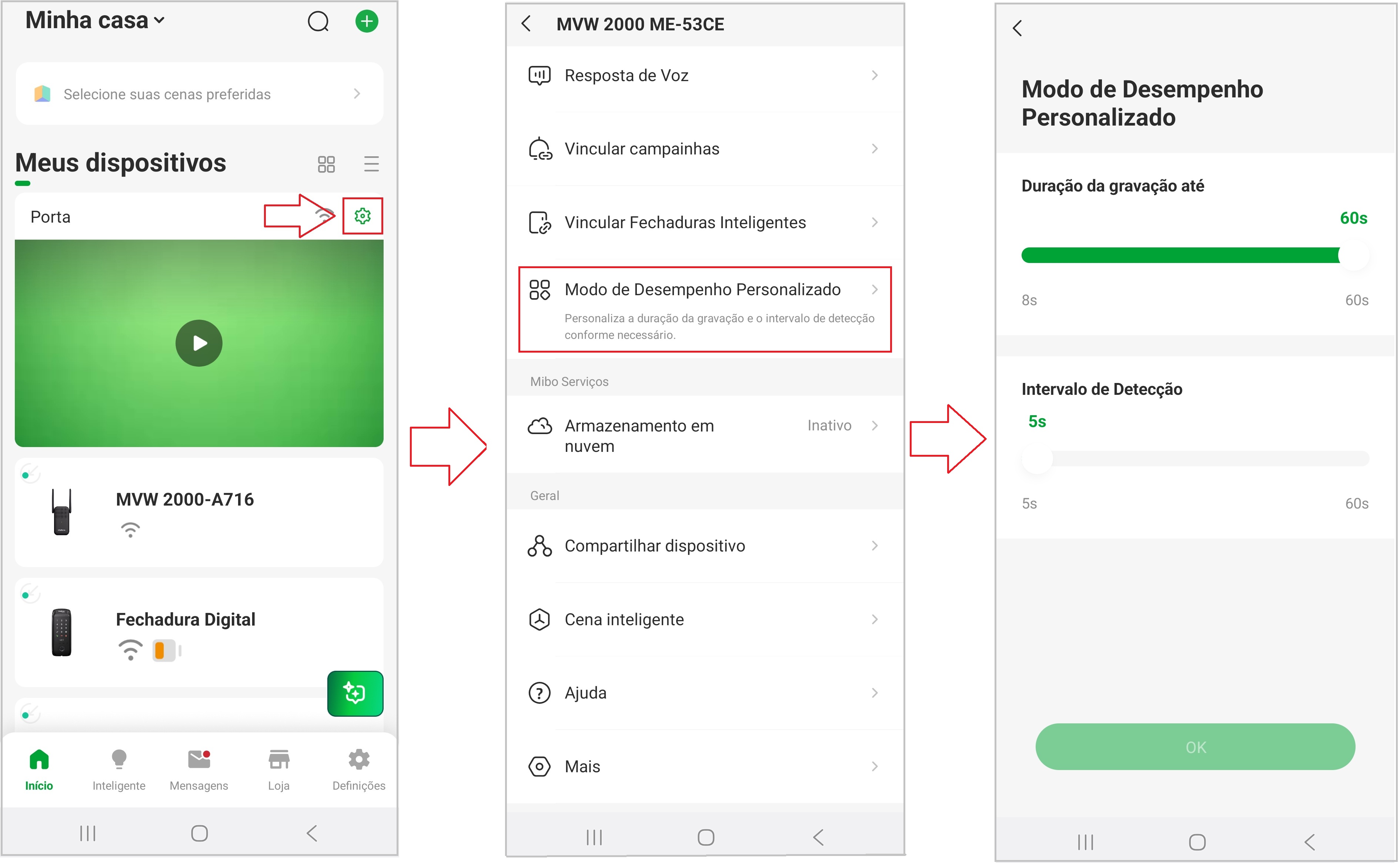 Essa função permite personalizar a duração da gravação e o intervalo de detecção.