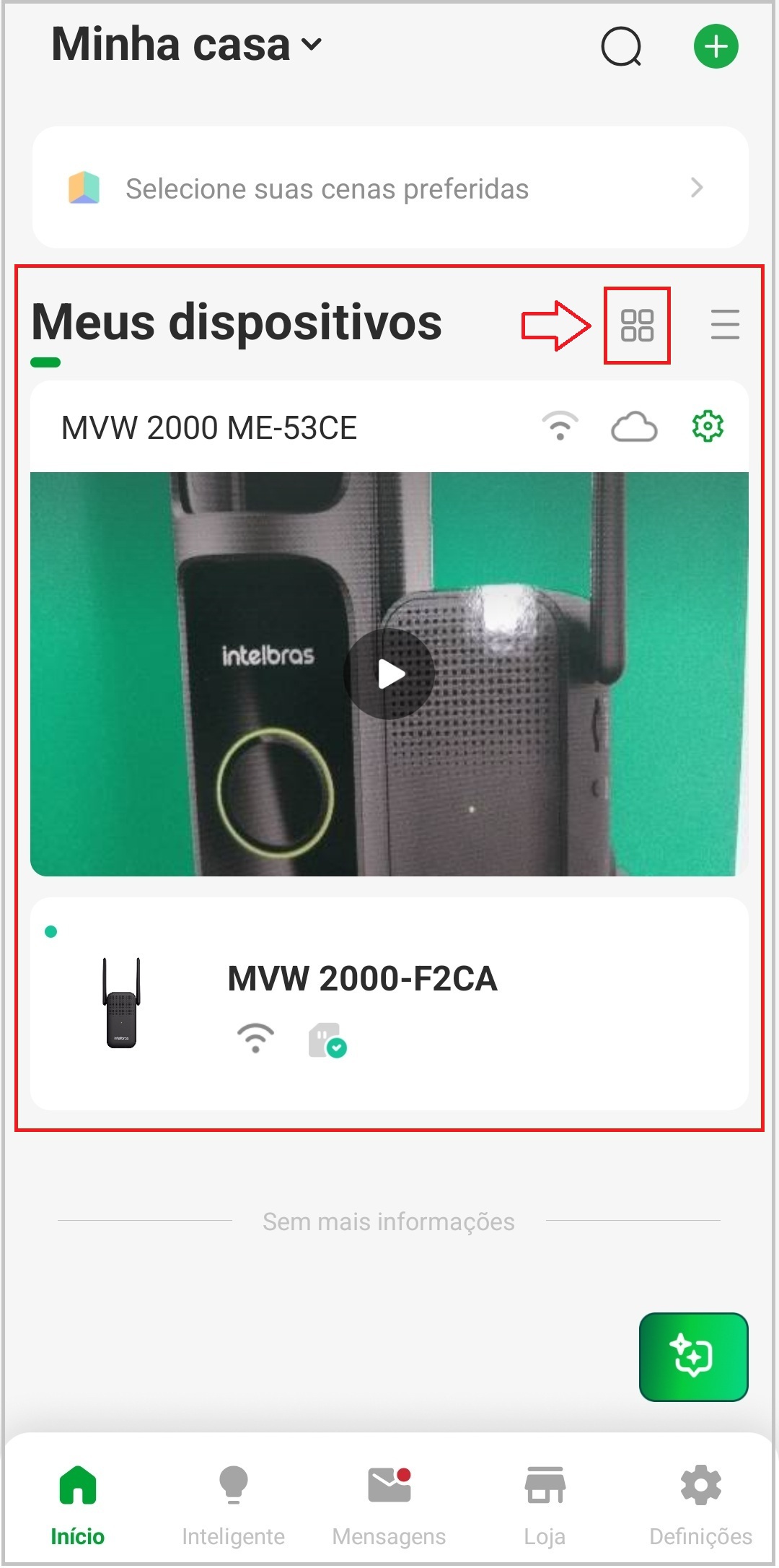 2- Toque no símbolo de "+", no canto superior direito para adicionar o videoporteiro ou em Adicionar Dispositivos no centro da tela.