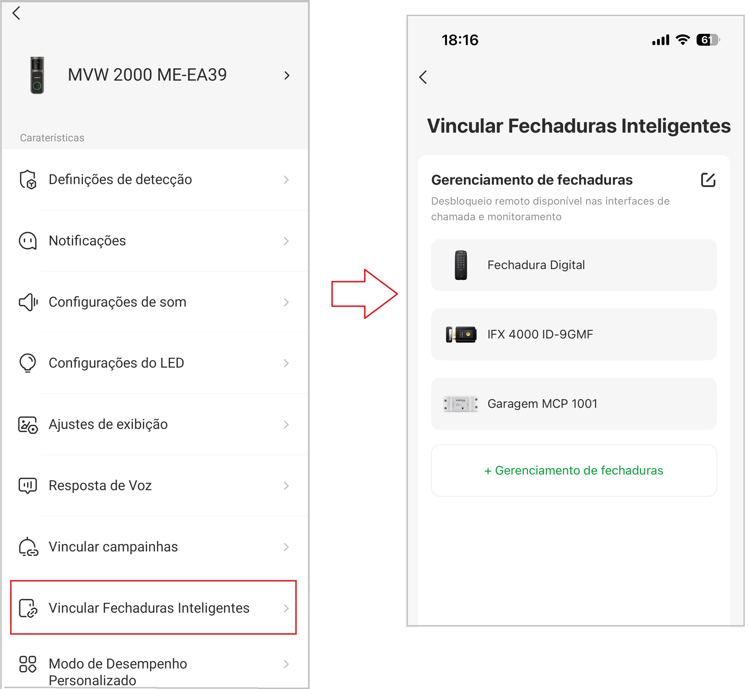 • É possível vincular Fechaduras Inteligentes e o MCP1001 ao videoporteiro para permitir a abertura de portas/portões via cloud.