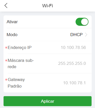 Nesse menu é realizado as configurações de rede TCP/IP (ethernet), Wi-Fi, Wiegand e RS-485.