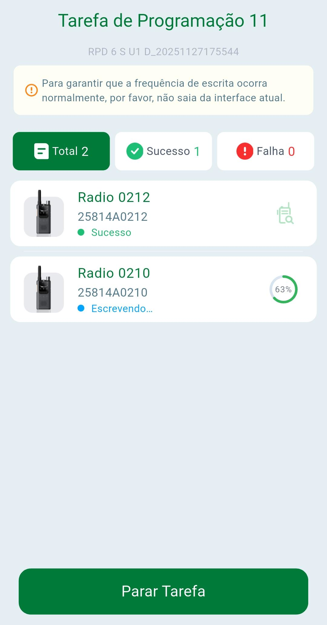 Ao clicar em Programar as configurações serão enviadas para os rádios de forma sequêncial. Ao finalizar, basta clicar em "Sair"