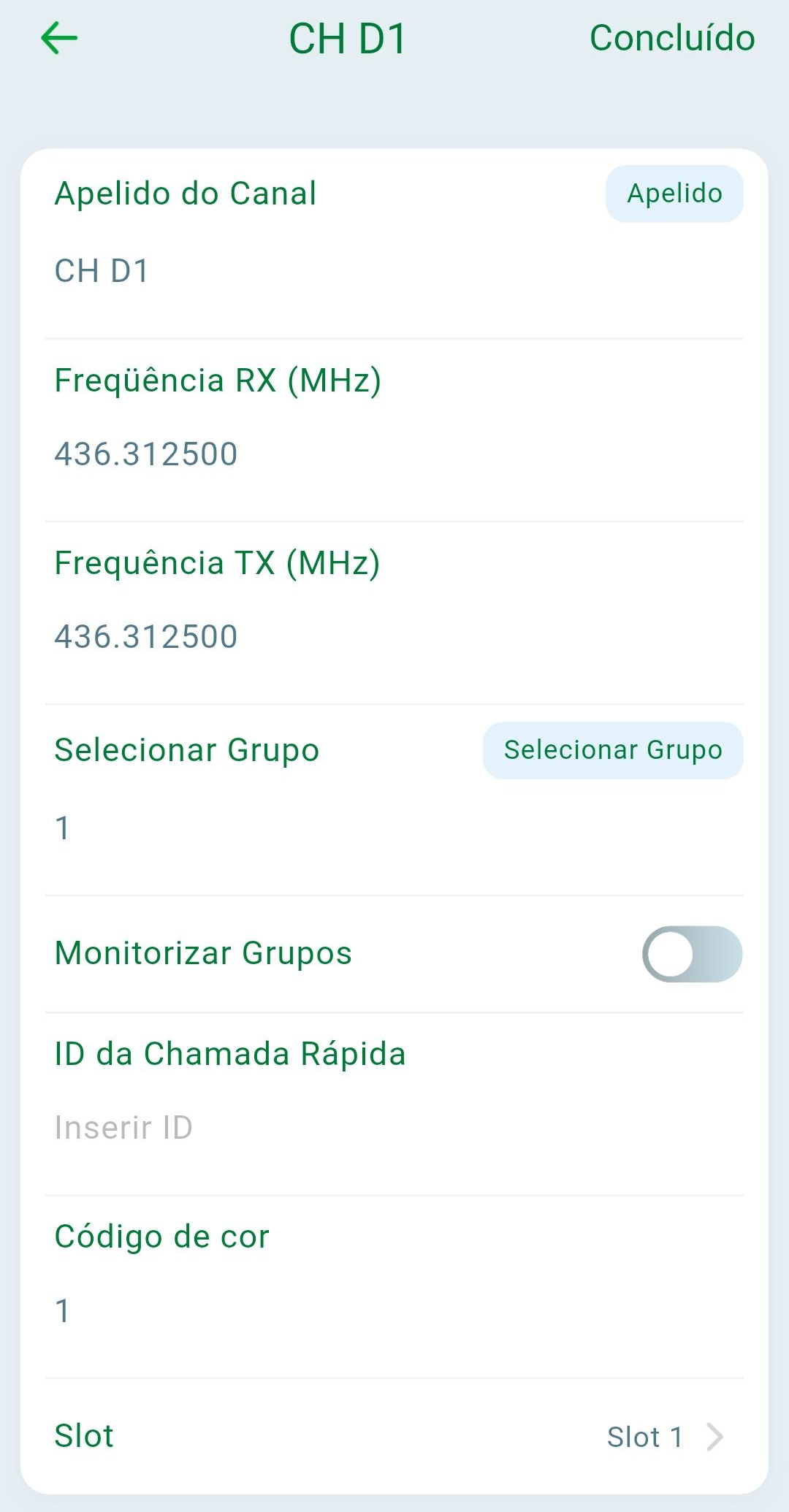 Temporizador de economia de Bateria (s): Define o tempo em segundos para que o rádio entre em economia de bateria.