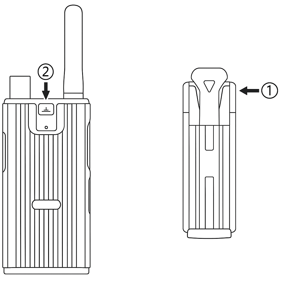 | Prendedor de cinto | Permite prender o rádio ao cinto, ou bolso. | |