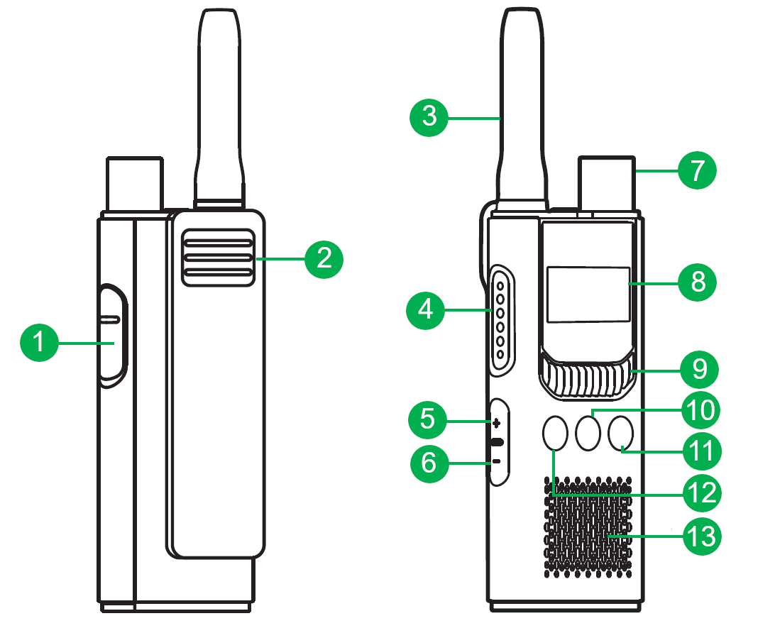 | LED indicador de status | Indica de forma visual o status atual do rádio. | |